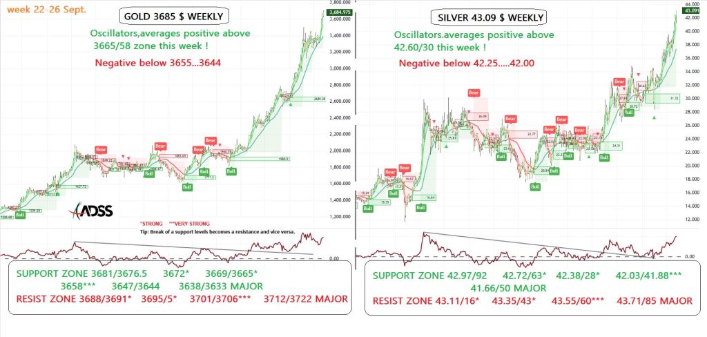 📌 ملاحظة: الاتجاه يبقى إيجابياً للفضة أعلى 42.30، بينما البيع يفضل فقط عند مقاومات قوية 43.55–43.85.