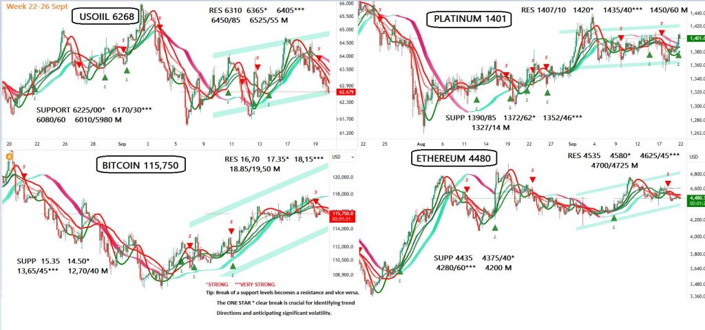 التحليل الأسبوعي: النفط – البلاتين – البيتكوين – الإيثريوم (22–26 سبتمبر 2025)